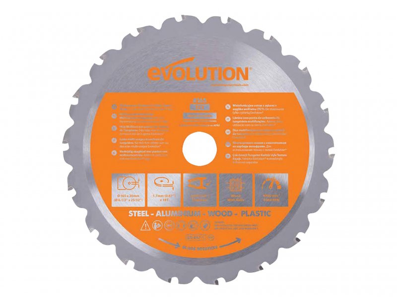 This Evolution Multi-Material Blade has been designed specifically for the Evolution Cordless R165CCS-Li 165mm Circular Saw.