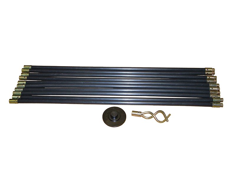 The set consists of ten flexible, screw together rods which can reach up to 9 metres in length when fully assembled. Each 920mm polypropylene drain rod has crimped and pinned rustproof connectors for extra strength and the kit is supplied complete with a 100mm rubber plunger and a 50mm double worm screw.