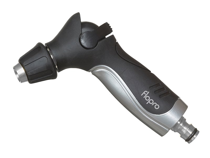 The Flopro Professional Jet Spray Gun is made from zinc alloy, ABS and TPR. Fitted with a silver chrome male adaptor for enhanced durability. Perfectly weighted and balanced for ergonomic handling. The water flow is fully adjustable with one hand. Ideal for both cleaning and irrigation.