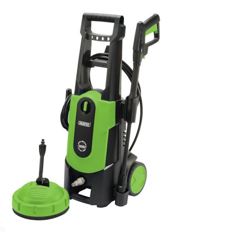 Portable pressure washer for domestic use, ensures efficient cleaning for vehicles, caravans, driveways, boats etc. Supplied with a patio cleaner attachement. The total stop valve automatically activates and deactivates the high pressure cleaner every time the trigger is operated, which increases the life of the motor and reduces electricity consumption. The durable Aluminium pump provides an impressive 165bar of pressure and each pressure washer is capable of a variety of different spraying patterns. Supplied with accessories; normal adjustable nozzle, 5m high pressure hose, pin for cleaning nozzle, high pressure trigger gun, lance, soap bottle, turbo nozzle, inlet water filter.